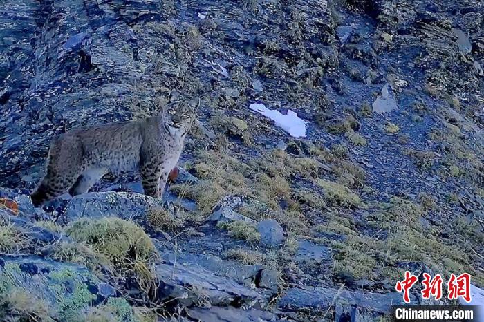 紅外線相機拍到的國家二級保護動物猞猁?!⌒慢埧h林業(yè)和草原局供圖
