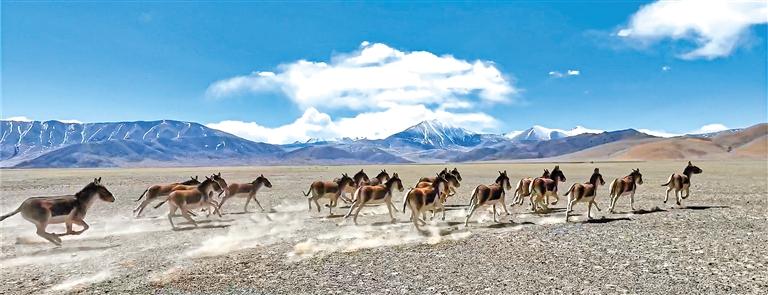 圖為在羌塘國家級自然保護(hù)區(qū)內(nèi)奔跑的藏野驢。邊巴多吉 攝 記者 溫凱 永青 洛桑旦增