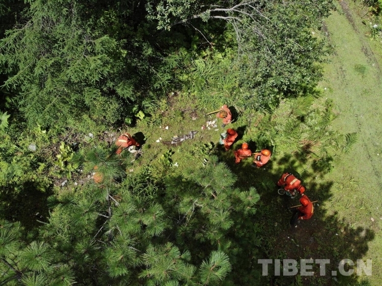 中國西藏網(wǎng)訊 群山環(huán)抱,山清水秀,湍急的南伊曲水在谷間轟然鳴響,許多橙色身影活躍在山林,搜索著一個(gè)個(gè)被遺棄的餐巾紙、塑料瓶、塑料袋等白色垃圾。