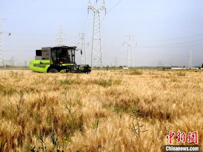 連日來,中國“鹽湖城”青海省格爾木市小麥進入收割期。田野里,機聲隆隆,一臺臺聯(lián)合收割機穿梭麥田中,“吞”穗“吐”麥,一派豐收景象。