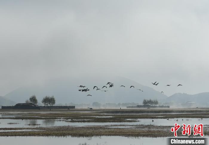 圖為10月31日,一群候鳥(niǎo)在納帕海上空盤(pán)旋。黃興鴻 攝
