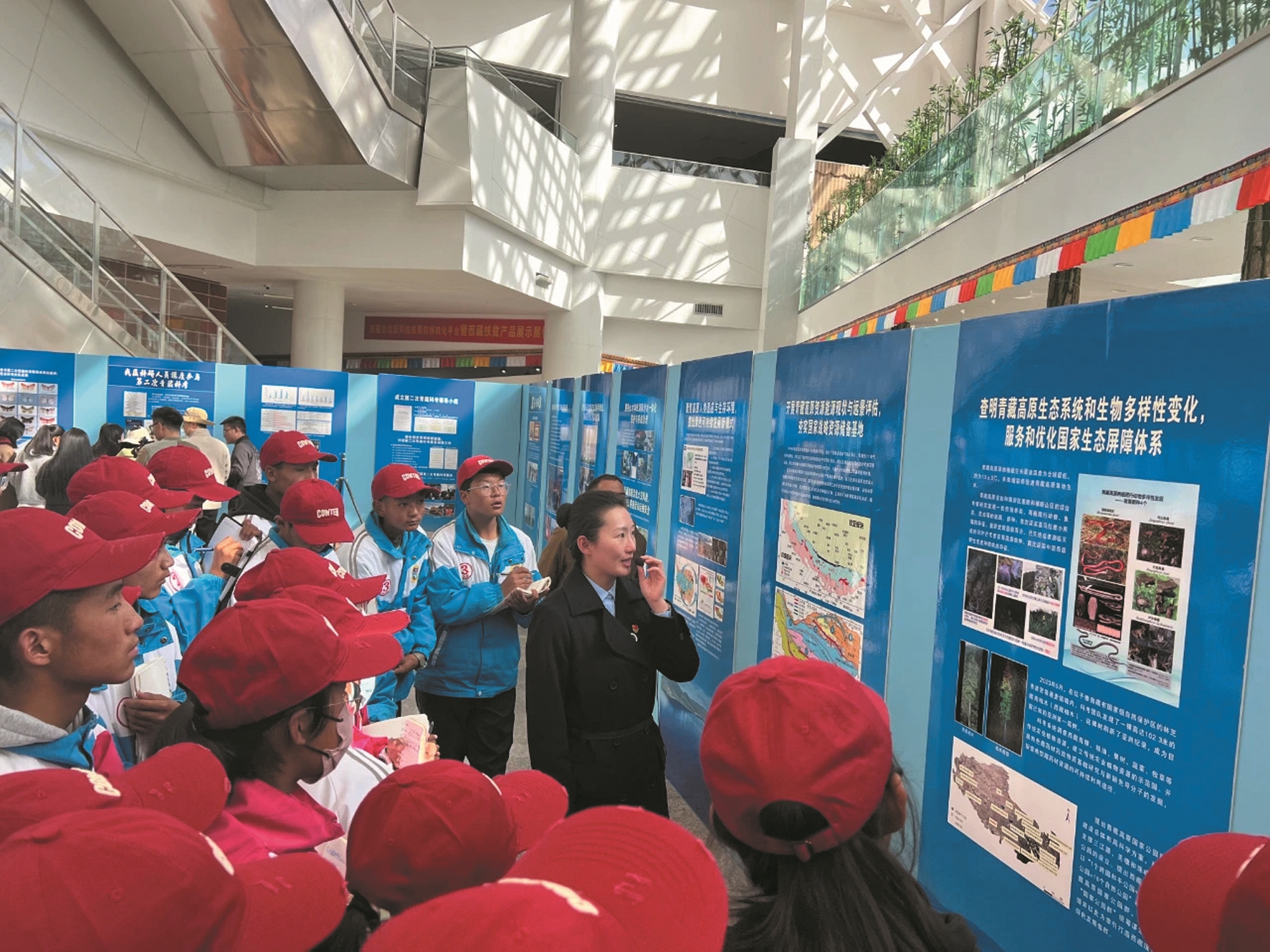 圖為講解員向參觀學(xué)生講解科考內(nèi)容。 拉薩融媒記者 小索朗曲珍攝
