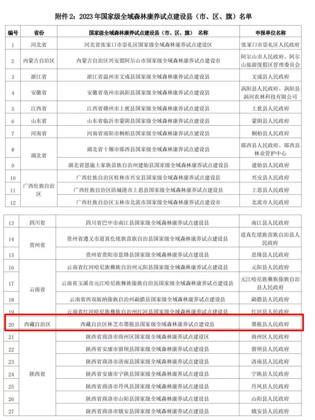 西藏唯一!墨脫縣入選2023年國家級全域森林康養(yǎng)試點(diǎn)建設(shè)縣