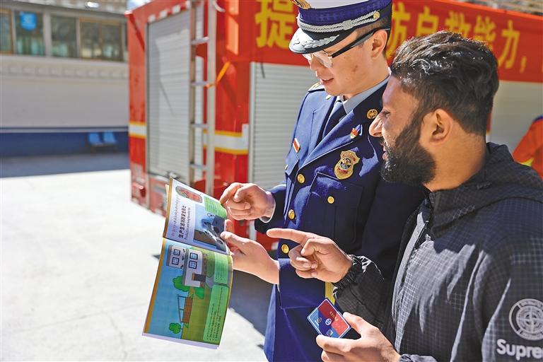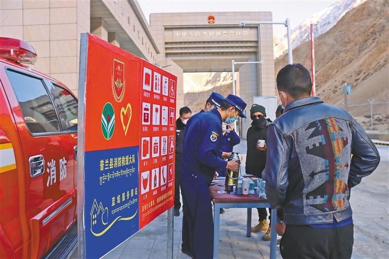 為進(jìn)一步提高入境外籍游客和商人的消防安全意識(shí),展示可信、可愛(ài)、可敬的良好消防形象,連日來(lái),西藏消防救援總隊(duì)相繼在日喀則市吉隆口岸、樟木口岸,阿里地區(qū)普蘭口岸設(shè)立“雪域藍(lán)焰”服務(wù)驛站,開展“三語(yǔ)”(中文、英文、藏文)消防安全宣傳活動(dòng),為繁榮“口岸經(jīng)濟(jì)”、推進(jìn)固邊興邊富民工作提供堅(jiān)實(shí)的安全保障。