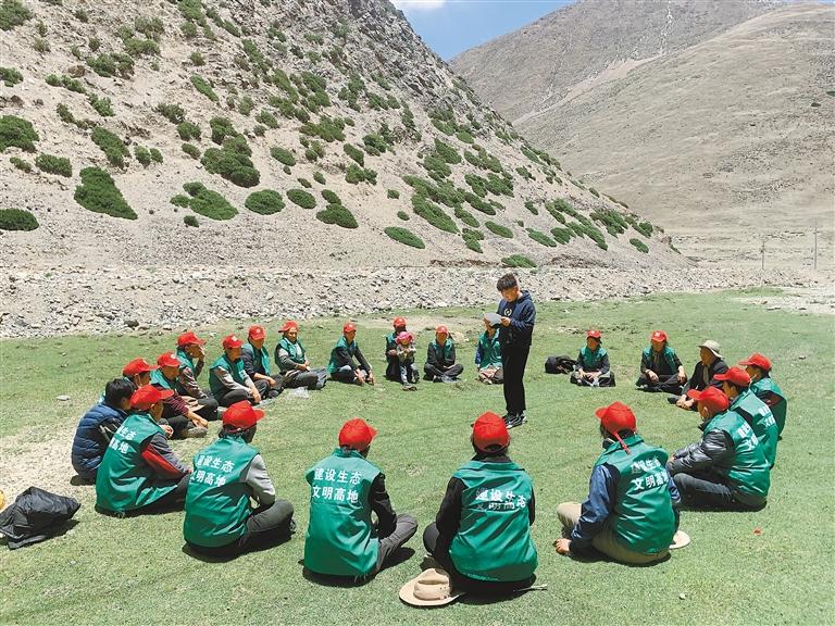 圖為美巴切勤鄉(xiāng)干部向護(hù)林員宣講生態(tài)環(huán)境保護(hù)政策。記者 楊小娟 攝