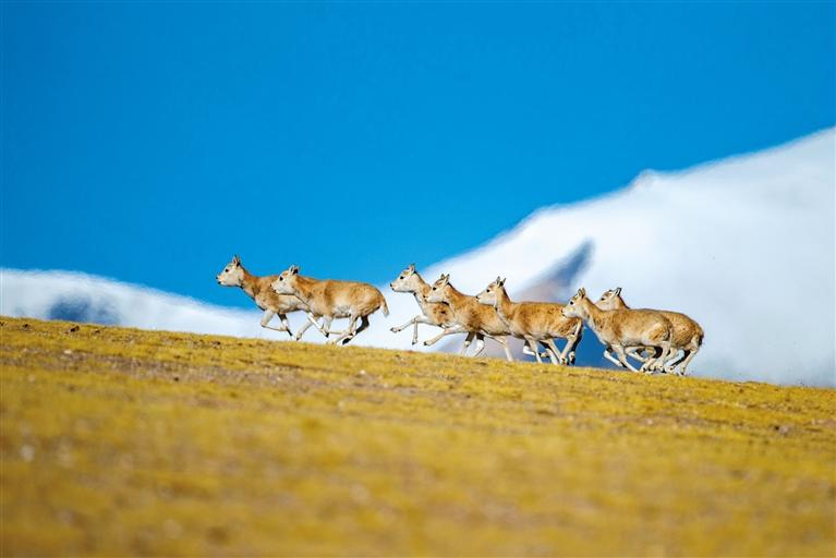 圖為在羌塘國家級自然保護(hù)區(qū),一群雌性藏羚羊在奔跑。新華社記者 姜帆 攝