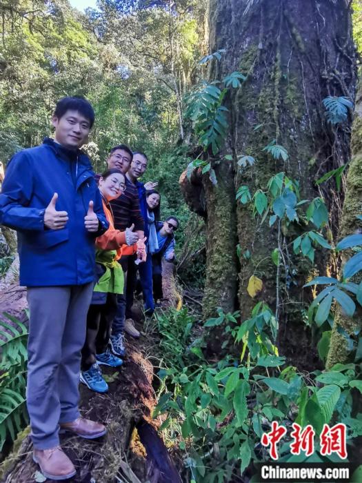 2023年12月22日,研究機構、高校專家學者等在西藏墨脫縣“墨脫樹王”辛達布周邊考察調(diào)研,并與樹王合影。李攀 攝