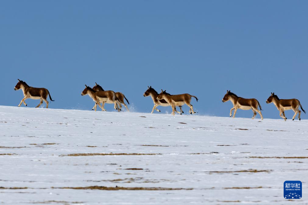這是在西藏那曲市尼瑪縣境內(nèi)的羌塘國家級自然保護(hù)區(qū)核心區(qū)拍攝的藏野驢(5月9日攝)。新華社記者 姜帆 攝