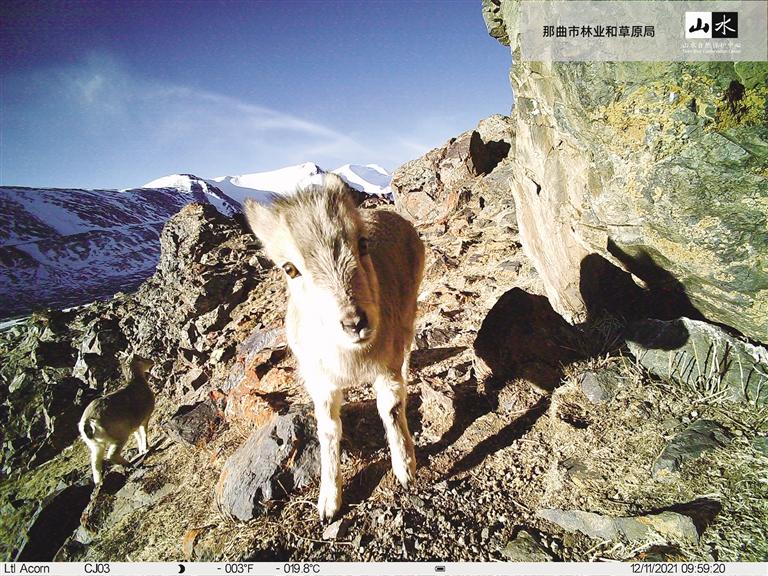“除了雪豹,我們還拍到了亞洲金貓、豺、藏野驢、野牦牛、馬麝、白唇鹿、黃喉雉鶉、巖羊等野生動(dòng)物?!苯f。