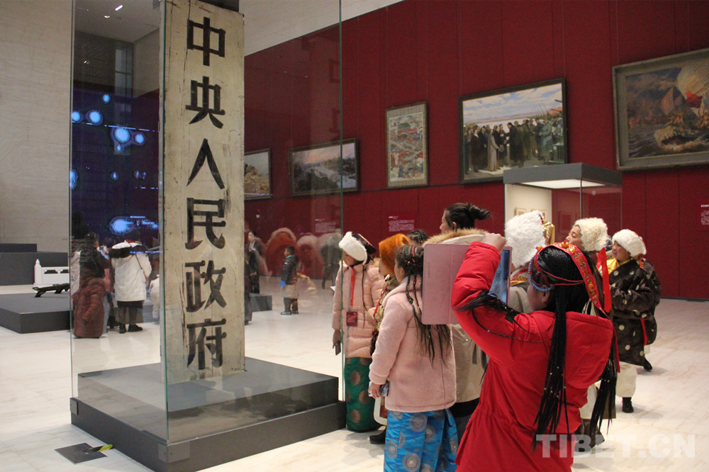 圖為“萌娃”們參觀中華人民共和國(guó)成立初期曾懸掛在北京中南海新華門內(nèi)的中央人民政府木牌 攝影:李元梅