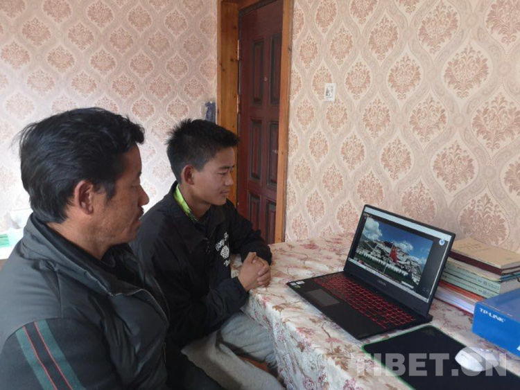 圖為學(xué)生和家長(zhǎng)在家中通過網(wǎng)絡(luò)共同參與紀(jì)念活動(dòng) 圖片由拉薩中學(xué)提供