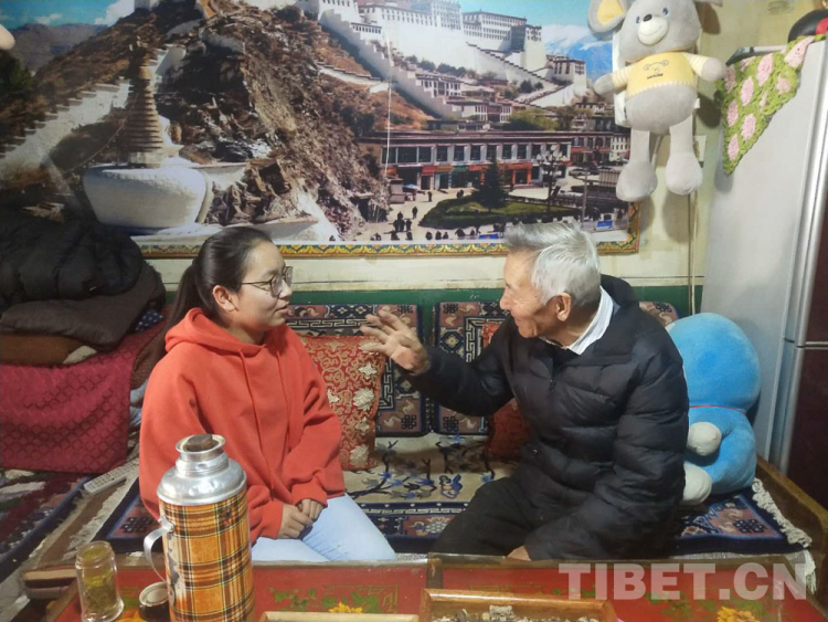 圖為學(xué)生在家中聽長(zhǎng)輩講述61年前的故事 圖片由拉薩中學(xué)提供