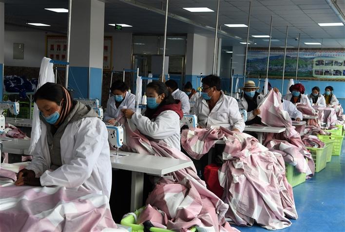 圖為丁青縣農牧民群眾在縣職教中心扶貧車間參加裁縫培訓。記者 洛桑 攝