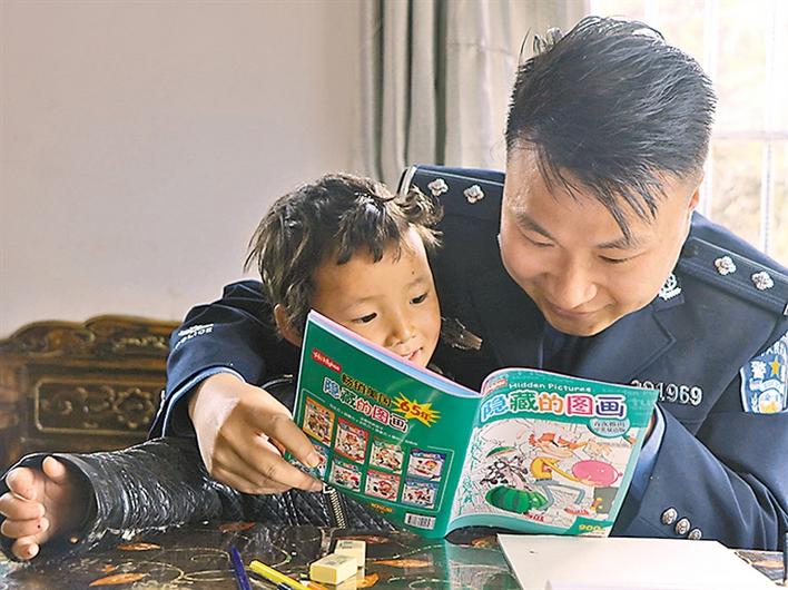 4月22日,西藏林芝邊境管理支隊米林縣南伊邊境派出所網(wǎng)格民警高泓淋和往常走訪時一樣,將兒童圖書認真和藹地讀給白瑪旺姆,還專門為她送去了書包、文具和兒童圖書。