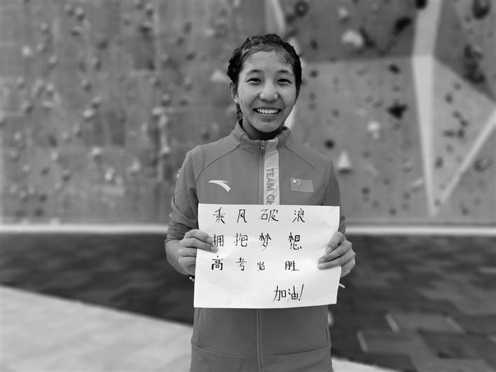 “乘風(fēng)破浪,擁抱夢想,高考必勝?!蔽鞑鼗╆?duì)的隊(duì)員們也送來了祝福。
