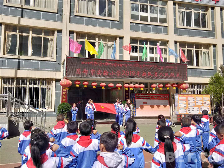 圖為昌都市實驗小學(xué)在學(xué)校操場開展新少先隊員入隊儀式