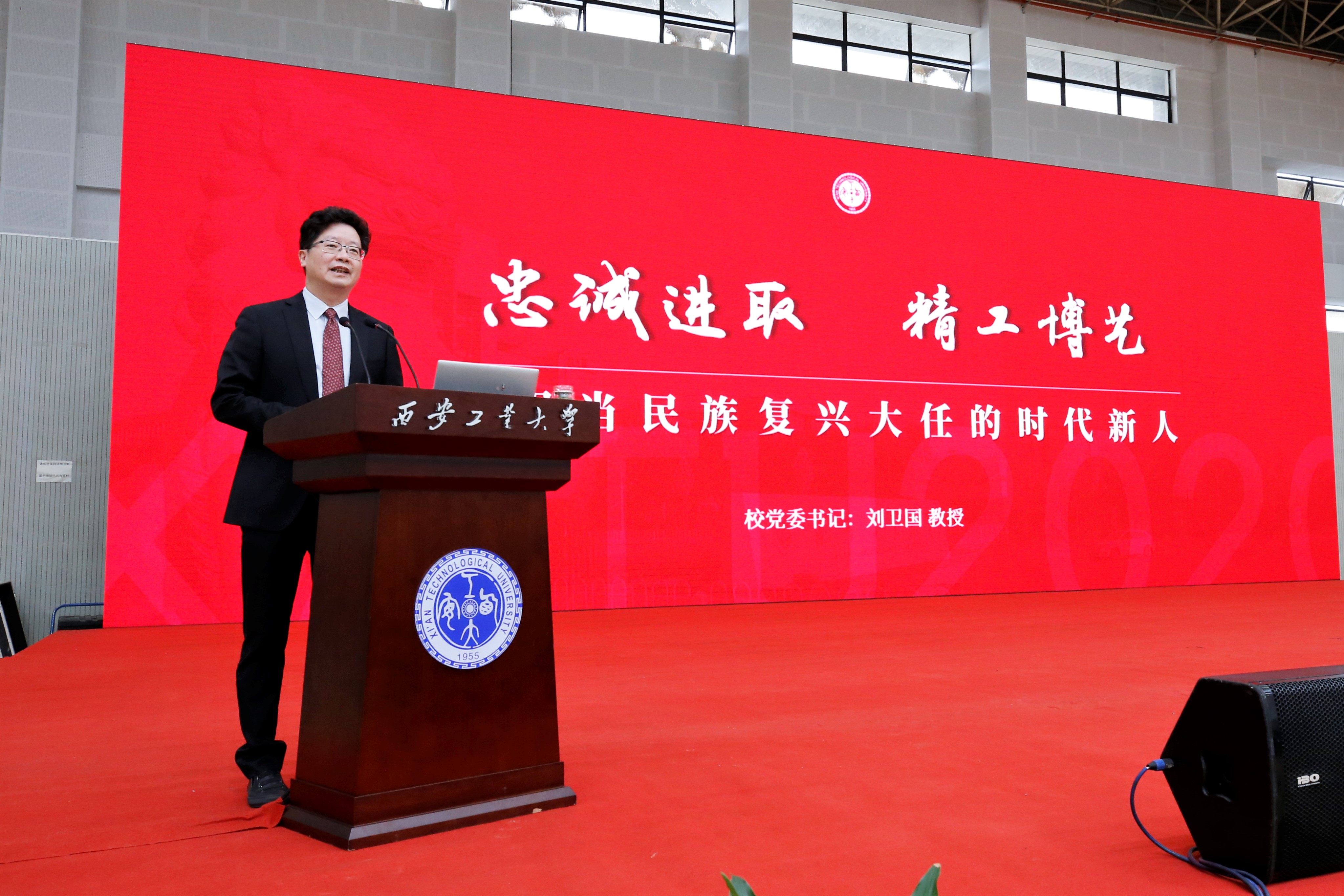 西安工業(yè)大學(xué)校黨委書記劉衛(wèi)國在2020級(jí)新生開學(xué)典禮上發(fā)表講話(學(xué)校供圖)