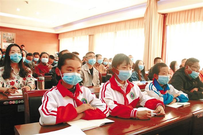 圖為瓊結縣黨員干部群眾和中小學生在聆聽中央第七次西藏工作座談會精神宣講。段敏 攝