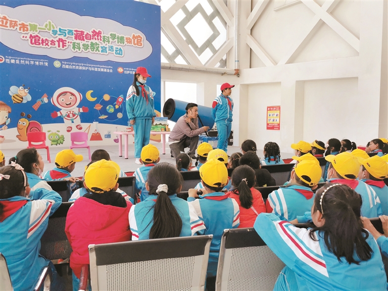 圖為在“館校合作”科學(xué)教育活動中,西藏自然科學(xué)博物館輔導(dǎo)老師在為學(xué)生講解科普知識。 拉薩融媒記者 拉姆次仁攝
