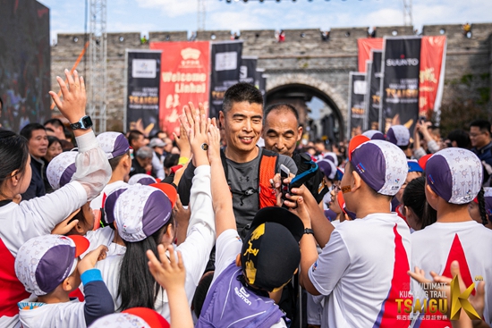 10月25日,珊瑚越野·少兒賽體彩柴古公益站,孩子們出發(fā)前,與完賽歸來的115公里選手互動。賽事組委會有關(guān)人士介紹,之所以如此安排孩子們的出發(fā)時間, 就是想引導(dǎo)孩子們感受來自115公里組別的堅持和不放棄。讓孩子們感受到對他人贊美、鼓勵、共情的同時,他們自己也能收獲到喜悅。