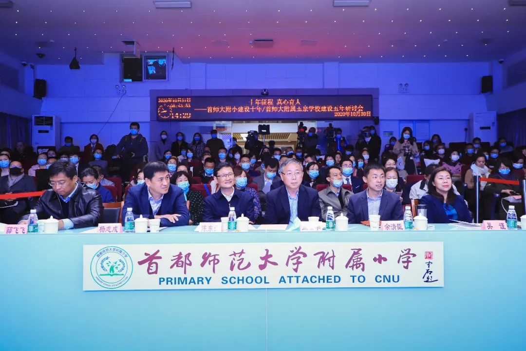 教育部基礎(chǔ)教育司副司長(zhǎng)陳東升、首都師范大學(xué)校長(zhǎng)孟繁華、首都師范大學(xué)副校長(zhǎng)楊志成、海淀區(qū)教委副主任吳謹(jǐn)、四季青鎮(zhèn)鎮(zhèn)長(zhǎng)薛飛飛,以及海淀區(qū)兩委主要領(lǐng)導(dǎo)及科室領(lǐng)導(dǎo)、首師大主要領(lǐng)導(dǎo)及初教院、教師教育學(xué)院等領(lǐng)導(dǎo)和專家,學(xué)校周邊部隊(duì)、社區(qū)領(lǐng)導(dǎo),部分中小學(xué)、幼兒園校長(zhǎng)、園長(zhǎng),學(xué)校家長(zhǎng)代表等近200人現(xiàn)場(chǎng)參會(huì)。