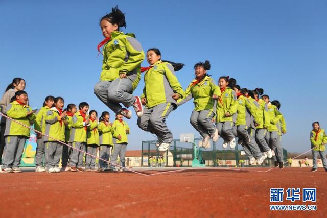 11月12日,學(xué)生在大課間參加集體跳繩。 位于山東省青島市即墨區(qū)的青島藍(lán)谷高新區(qū)東皋埠小學(xué)是一所鄉(xiāng)村學(xué)校,近年來,學(xué)校開展以乒乓球、籃球、跳繩等運(yùn)動為主的大課間活動,讓孩子們在享受運(yùn)動的同時愉悅身心,增強(qiáng)體質(zhì)。 新華社發(fā)(梁孝鵬攝)