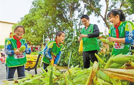 蘭州市紅山根小學的學生們在豐收的喜悅中,感受到了糧食的來之不易。