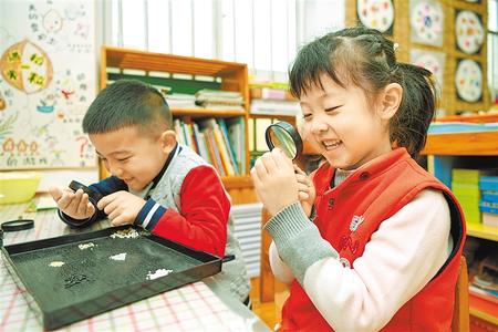 課堂上孩子們通過觀察、觸摸、分類,來了解谷物。