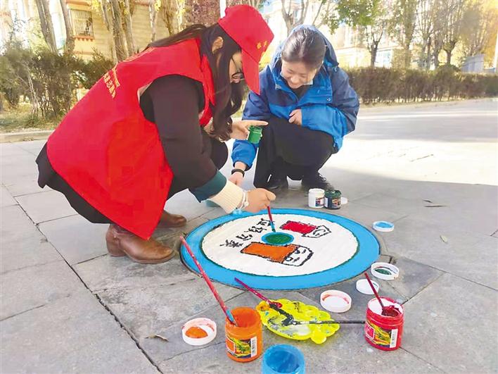 拉薩城關(guān)區(qū)又多了一道美麗的風景,納金村路面上出現(xiàn)了一幅幅創(chuàng)意十足的涂鴉作品。
