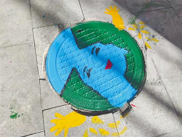 以環(huán)保、垃圾分類為主題的各種彩繪圖案覆蓋上了井蓋,使得原本黑乎乎的井蓋一下變得活潑生動起來。