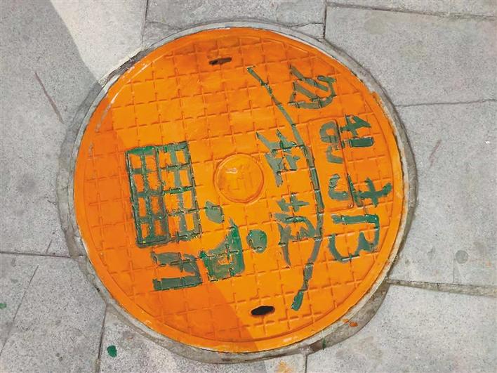 涂鴉后的井蓋。記者 黃志武 攝