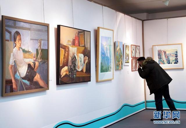 12月15日,一名參觀者在欣賞大學生書法作品。新華社記者 劉穎 攝