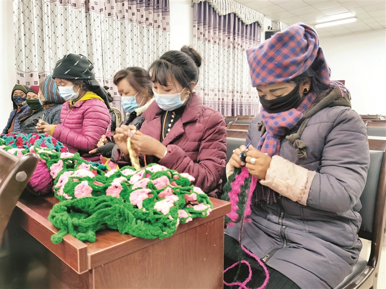 圖為達(dá)孜區(qū)邦堆鄉(xiāng)克日村婦聯(lián)組織婦女集中開展了“巾幗夜校領(lǐng)學(xué)”活動(dòng),學(xué)員們?cè)诂F(xiàn)場進(jìn)行手工編織。拉薩融媒記者 范江英攝