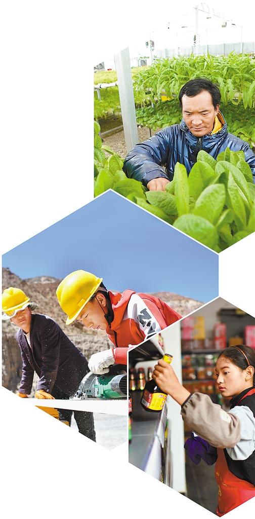 圖①: 在噶爾縣生態(tài)農(nóng)業(yè)產(chǎn)業(yè)園內(nèi),噶爾縣左左鄉(xiāng)上左左村村民宿加在查看蔬菜生長(zhǎng)情況。新華社記者 詹彥 攝 圖②:八宿縣擁巴鄉(xiāng)村民格松旺扎(右)在八宿縣西巴村小型磚廠里忙碌。新華社記者 詹彥 攝 圖③:丁青縣尺牘鎮(zhèn)烏巴村村民斯朗德吉在尺牘鎮(zhèn)的一家超市里打工。新華社記者 詹彥 攝