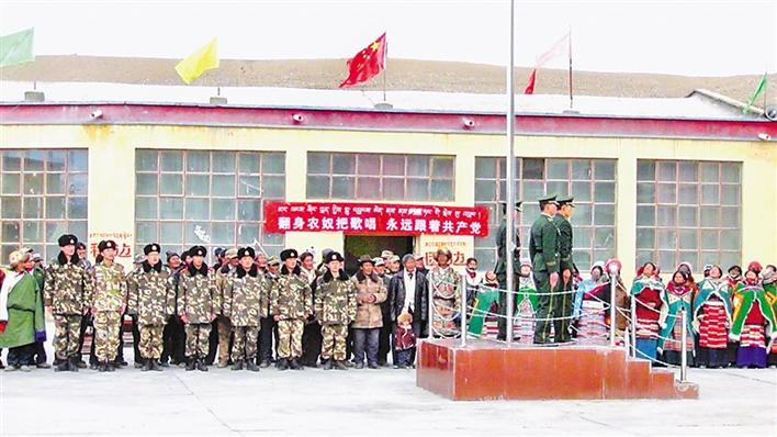 圖為3月28日,烏江村軍民聯(lián)合開展“翻身農(nóng)奴把歌唱 永遠(yuǎn)跟著共產(chǎn)黨”升國旗活動。