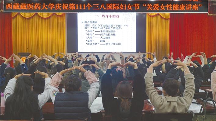圖為西藏藏醫(yī)藥大學(xué)的女性教職工參加“關(guān)愛女性健康講座”活動(dòng)現(xiàn)場(chǎng)。