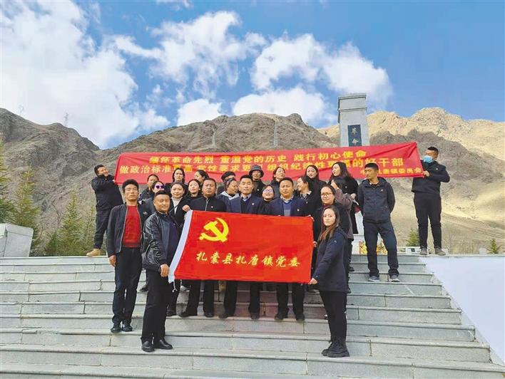 圖為活動結(jié)束后全體黨員干部在革命烈士紀念碑前合影留念。次仁片多 索朗瓊珠 攝