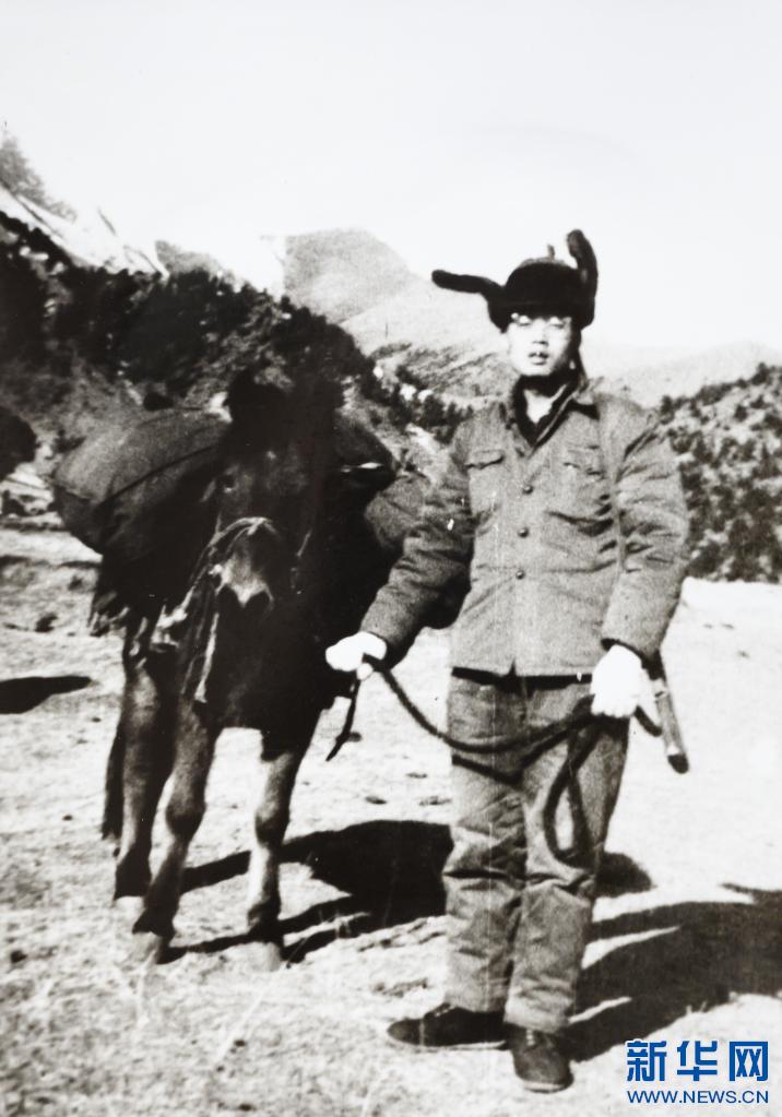 1981年,李純民在西藏昌都類(lèi)烏齊縣下鄉(xiāng)工作途中(2021年4月21日翻拍)。新華社發(fā)