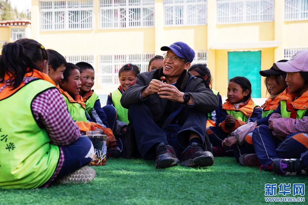 5月1日,在西藏昌都市類(lèi)烏齊縣伊日鄉(xiāng)小學(xué),李純民(中)和學(xué)生們交流。新華社記者 黃臻 攝