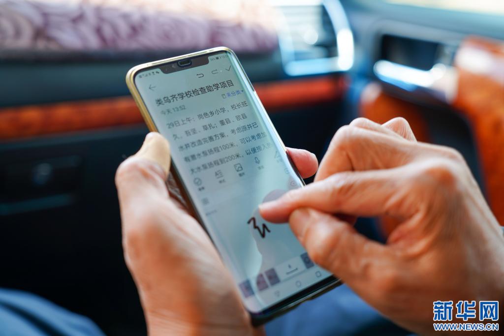 5月1日,李純民在前往西藏昌都市類(lèi)烏齊縣伊日鄉(xiāng)小學(xué)途中,整理記錄此次進(jìn)藏助學(xué)事宜。新華社記者 黃臻 攝