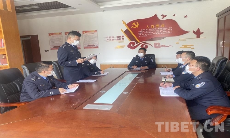 圖為拉薩邊檢站執(zhí)勤三隊(duì)民警集體學(xué)習(xí)