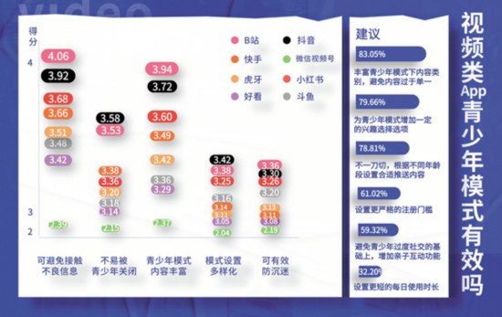 面對目前各平臺青少年模式良莠不齊的現狀,參與測評的大學生也有自己的見解。在剛剛畢業(yè)1年的95后教師姜煒眼里,部分軟件青少年模式下推薦的內容不能滿足青少年的興趣。“好看視頻給我推薦的都是動畫片,我教的高中生不太感興趣;小紅書的青少年模式入口有點難找,找到以后推薦給我的都是考研相關內容,對未成年人來說可讀性不高;斗魚、虎牙這類直播平臺,本身大部分都是游戲類內容,青少年模式下幾乎大多數內容都會被屏蔽,我相信任何使用這兩款軟件的青少年都不愿意使用青少年模式。”不過,他給抖音和B站打了高分?!斑@兩款軟件的推送內容除了有興趣類的,還有一些名師課程,符合青少年的興趣?!?/p>