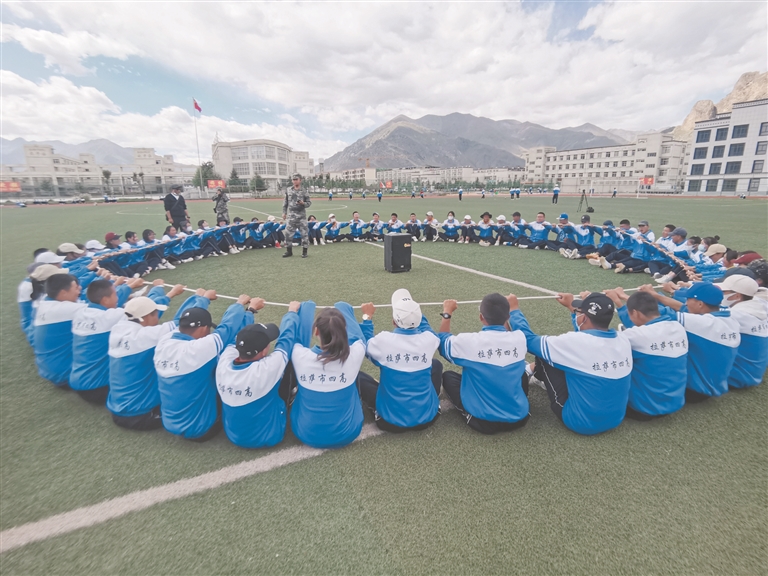 圖為動(dòng)力圈游戲環(huán)節(jié),同學(xué)們合力轉(zhuǎn)圈。拉薩融媒記者 郝奕凝攝