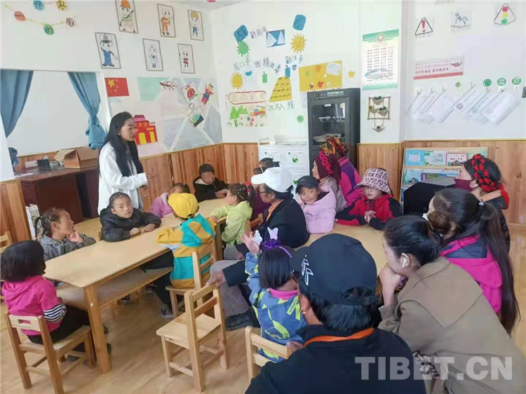 圖為俄達(dá)門(mén)巴村幼教點(diǎn)老師、學(xué)生及家長(zhǎng)學(xué)習(xí)《家庭教育促進(jìn)法》