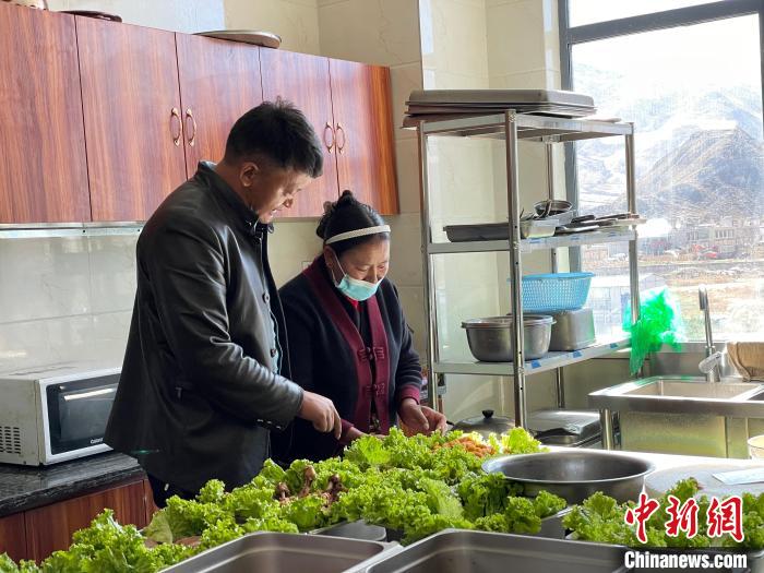 圖為達旦(左)正在查看“愛心午餐”的備餐情況?!≈x牧 攝
