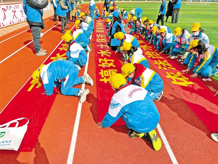 林芝市第二小學(xué)的學(xué)生們?cè)趷圩o(hù)水土資源宣傳標(biāo)語(yǔ)上簽名