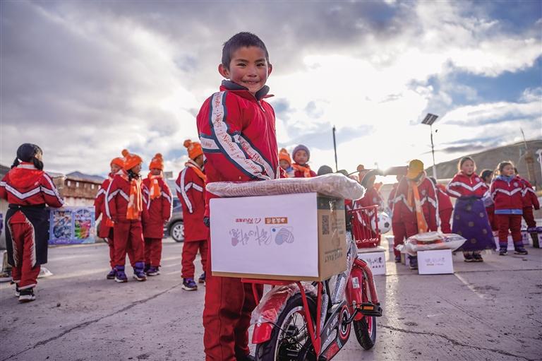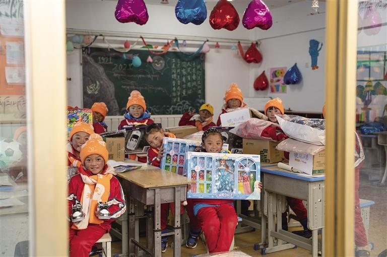 足球、籃球、奧特曼玩具、芭比娃娃、遙控飛機(jī)、自行車……孩子們欣喜地接過心心念念的禮物,迫不及待地玩耍起來,紅彤彤的臉上流露出純真的笑容。