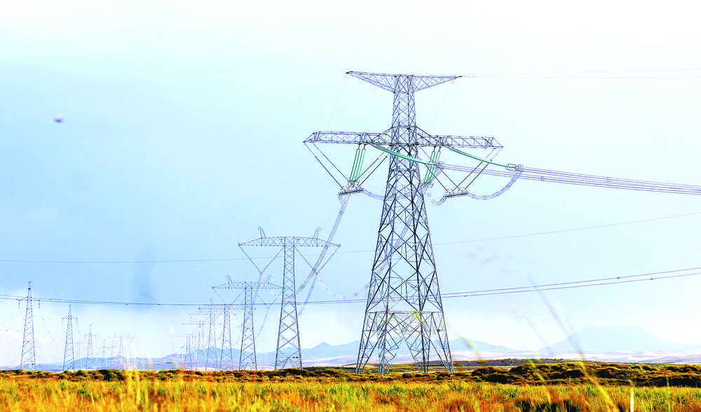 世界首條以輸送清潔能源為主的青海至河南±800千伏特高壓直流工程輸電線路。王國(guó)棟 攝