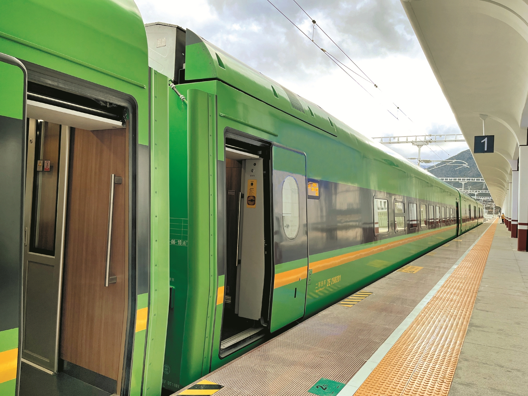拉林鐵路是我國(guó)首列雪域高原電氣化鐵路,開通了拉薩至林芝九個(gè)中間客貨辦理站點(diǎn),包括拉薩、貢嘎、山南(桑日)、加查、朗縣、米林、林芝等。列車穿行在岡底斯山和喜馬拉雅山中的藏南谷地,途經(jīng)三個(gè)市七個(gè)縣(區(qū)),全長(zhǎng)435.48公里,設(shè)計(jì)時(shí)速160公里,設(shè)定商務(wù)座、一等座、二等座三個(gè)等次,中間編掛拖車,編組為12輛,定員755人。