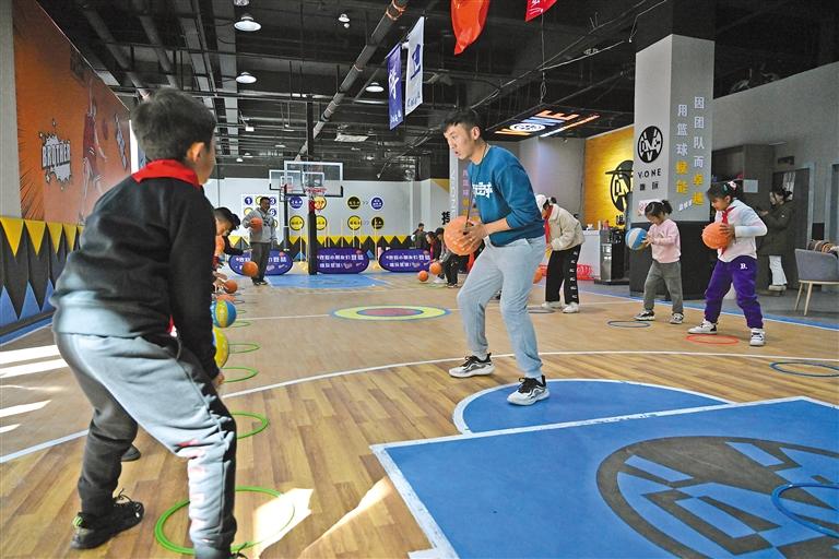 孩子們在教練的指導(dǎo)下進行運球練習(xí)。記者 洛桑 攝